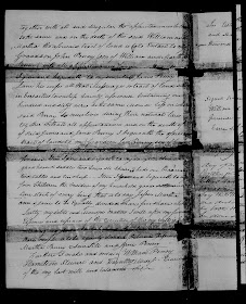 The tape used to repair the pages make it really difficult to read some of the lines and some of the wording in the section written by the registrar was deduced by looking at other wills.